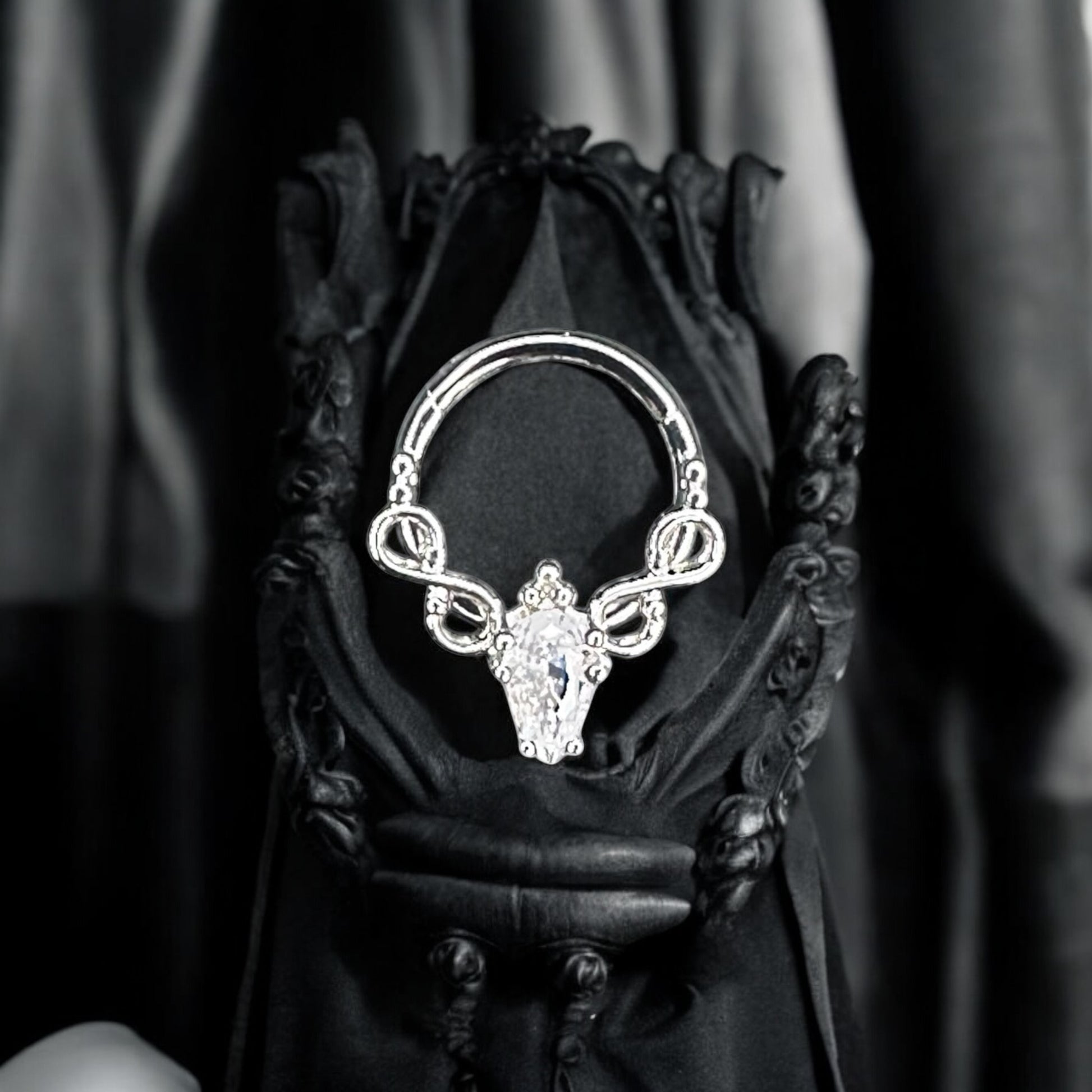 Dagger stoned piercing ring 316l