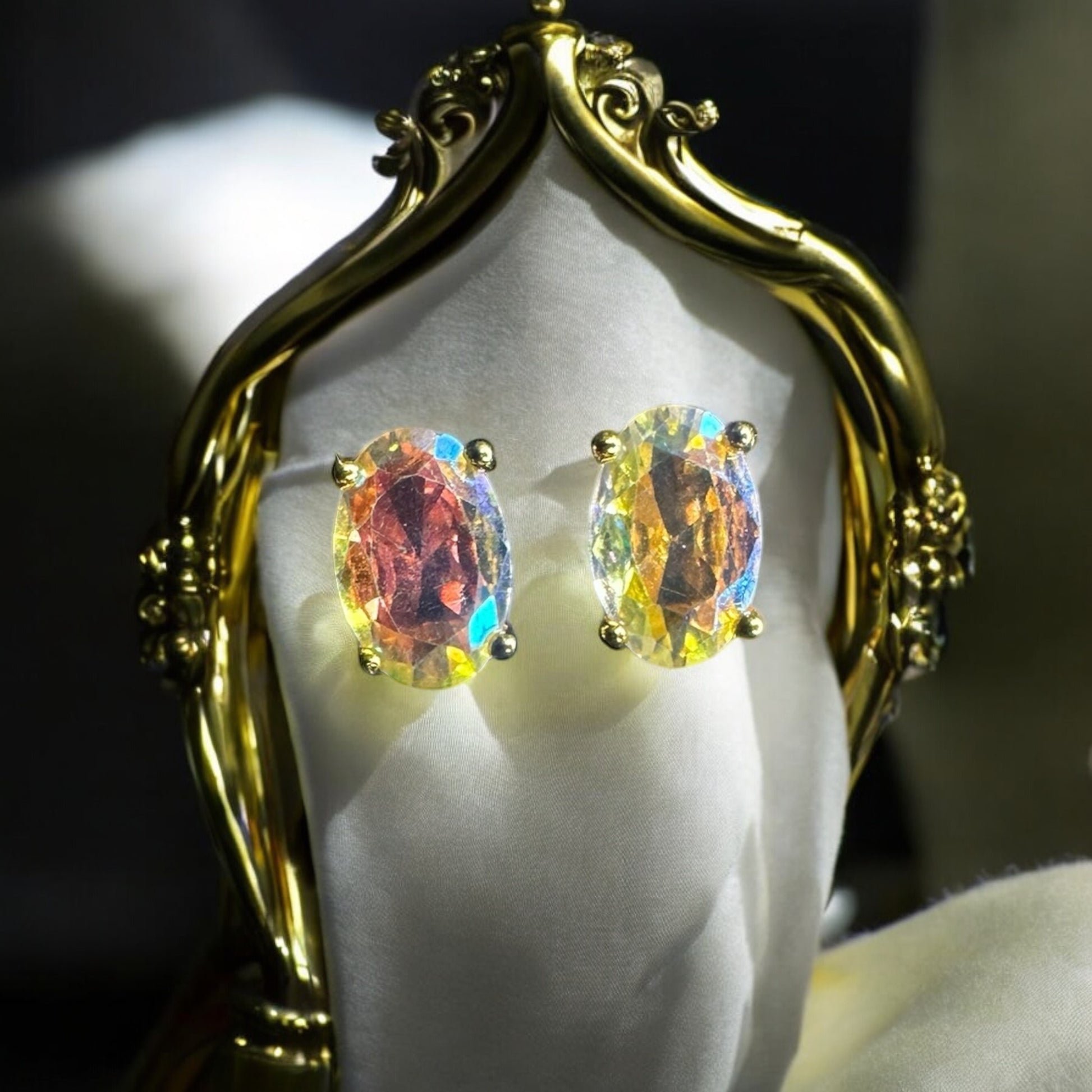 This stunning labret earring boasts a beautiful iridescent stone and is made from sterling silver dipped in 14kt gold for added elegance. With an 8mm post, internally threaded design, and flat back for ultimate comfort, this earring is perfect for any occasion. Expertly crafted for a seamless and stylish look.